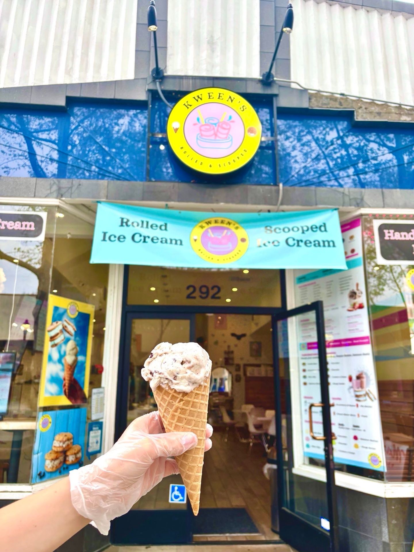 Welcome to Kween's, where the art of ice cream meets creativity! At Kween's, we redefine the ice cream experience with our signature handcrafted rolled ice cream delights, our well known freshly baked ice cream cookie sanwhich, and our richly flavoured scooped Ice Cream.
